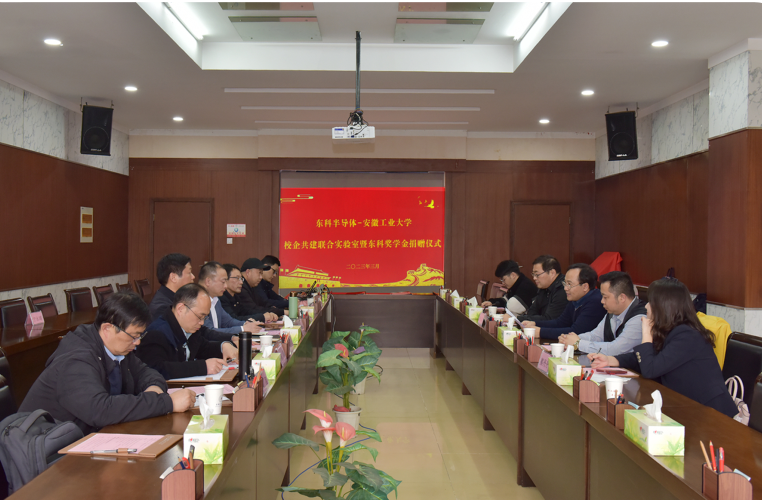 2023年3月8日下午,東科半導體(安徽)股份有限公司和安徽工業大學共建聯合實驗室揭牌儀式暨東科專業獎學金捐贈儀式在安工大佳山校區隆重舉行。